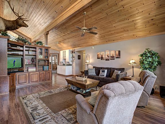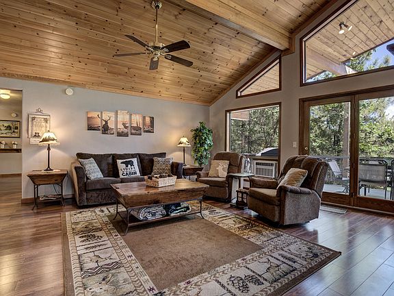Beautiful 4 bedroom, 2 bath home on quiet cul-de-sac. Open floor plan provides ample space for family and friends to gather. Kitchen is a cooks delight with oven/microwave wall unit, cook top & plenty of counter space for prepping or entertaining. Two sided propane fireplace for immediate ambiance. Primary suite includes double sinks, walk in closet and jetted tub. Back yard is complete with kids play area and fenced garden space with irrigation. The front has a large covered deck to enjoy the sounds of nature. This home is an active and successful short term rental. This is a great opportunity for a full time home, weekend get away or income producing property. Oversized and insulated garage plus under house storage.