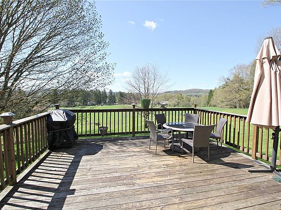 This 4 bed 2 bath home just outside the village of Hamilton offers a serene and picturesque setting. Nearly one-acre of open yard surrounds the house that has beautiful valley views to the east. Calming sounds of the nearby stream from abutting land to the west. Bright eat-in kitchen with an open living room dining room combination. The southeast facing deck and backyard offer endless opportunities for outdoor enjoyment, from landscaping and gardening to relaxing by a fire pit. Convenient layout, with two bedrooms and a full bath on the first floor and two more bedrooms and a full bath upstairs. Recent updates, including a new roof in 2019 and renovated bathrooms, ensure this property is move-in ready. First floor laundry. Basement workshop. With its Colgate University campus views, paved circular driveway, and additional storage space, this country house awaits anyone seeking a peaceful retreat just outside the village.