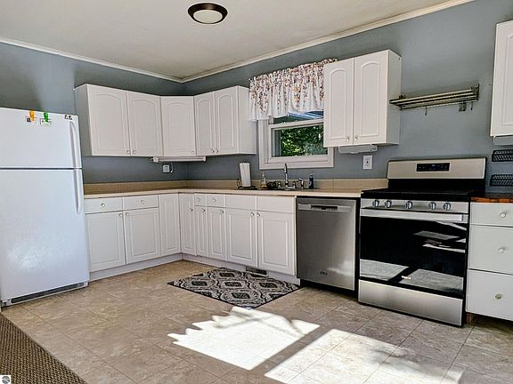 Hunting enthusiasts and country-lovers delight! 2-bed 2-bath farmhouse with many upgrades, including new range, dishwasher, microwave/air fryer/convection oven, water bubbler dispenser, water softener, carpet, vinyl flooring, gun safe, specialty hand-made headboard in the primary, and updated bathrooms. The 10-acre parcel boasts a 3-car garage, and pole barn including a car lift, generator, 200-ampbreaker, furnace-heated, and additional 220-amp heater. Meander out to your deer blind, which is solar-powered so you can charge your phone while hunting. Close circuit TV to the backyard from the living room will assist you in seeing that prize buck from inside the home! Apricot, apple, and cherry trees in addition to blackberries and raspberries will keep you stocked up on nature's sugar. Sellers have even tapped the maple trees and made maple syrup! Several trails throughout the property are great for walking, cycling or motorcycling. The home is centrally located and convenient to Ellsworth, Charlevoix, Central Lake, and Bellaire. It's close to St Clair Lake, Ellsworth Lake and the upper Chain O’Lakes. Primary bedroom could be turned into 2 bedrooms quite easily. Easy to access/show, so book your showing today and make country living a reality!