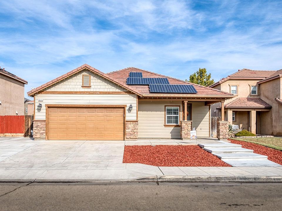 Great opportunity for first-time buyers, perfect for a rental, or if you're looking to downsize. Built in 2009. Located in a cul-de-sac. Large backyard ready for your landscaping ideas. Large patio entire length of house. Tile roof. Kitchen features granite counters, gas stove and oven, pantry. Beautiful floors in living room and hall. Tasteful vinyl flooring in kitchen and baths. Ceiling fans and window blinds throughout. 20 leased solar panels for lower energy bills. Lots of extra cement surrounding house including room for three vehicles out front. Easy access to Freeway 180.