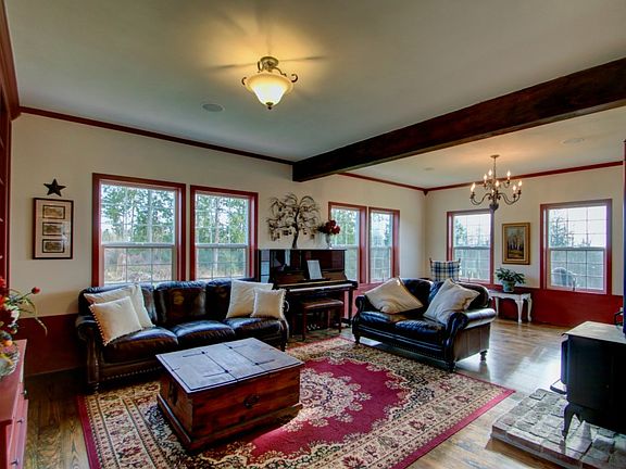 Traditional Shaker-inspired View Home on 14 Acres in Bow. You'll feel so relaxed and joyful as you step back in time to this warm and inviting private residence. Exposed beams, wood flooring, granite, brick, white cabinetry, period lighting and gridded windows combine to give you the sense you are in an early-american home. Rest assured; this 2,350 SF, 4 bedroom, 3.5 bath plan was completed in 2018 and is all modern and new. Master on the main level, and a second master above the garage with a separate stairway. The large open great room, thoughtful built-ins, beautiful vaulted upstairs bedrooms, wood stove, and brick patio area. The large parcel is mostly clear for pasture with a seasonal creek. Fabulous garden with greenhouse, storage, and wood shed. Heat pump and on-demand H20.
