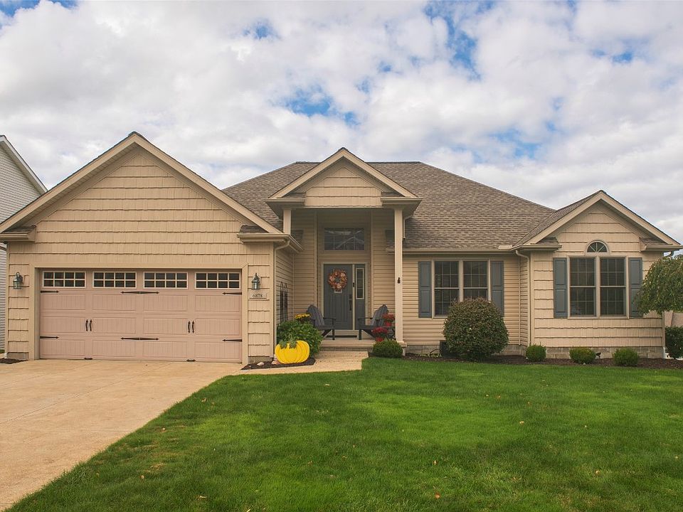 This is it! Immaculate 3 bedroom, 3 full bath ranch in gorgeous Harbor Ridge! Home offers a bright & spacious floorplan w/lots of natural light. Great room w/beautiful hardwood floor, crown molding & cozy gas fireplace. 24' x 14' hickory kitchen features soft close doors/drawers, granite counter tops & S.S. appliances. Large eat in area w/a walkout to 20' x 15' deck to enjoy stunning sunsets. A great home for entertaining! Formal dining room w/beautiful hardwood floor & tray ceiling. Master bedroom suite also has tray ceiling, walk in closet & full bath w/whirlpool tub! Convenient 1st floor laundry. Magnificent lower level family room features a sitting area, dining area & high end bar w/two wine fridges & a 3 keg tap system. Host card games, movie nights, watch the ball game etc. along with a walkout to the rear patio w/a natural gas grill & electrical hookup for a hot tub. 16' x 11' L.L office could be a guest room. Prepare to be impressed. 1 yr home warranty.