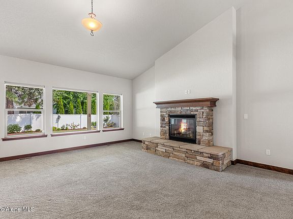 Nestled in the highly sought-after Lake Forest West neighborhood, this beautifully maintained single-level home offers the perfect blend of comfort, convenience, and charm. Built in 2015 and offering 1,906 sq ft of thoughtfully designed living space, this 3-bed, 2-bath home is ideal for anyone looking to enjoy quiet neighborhood living close to everything Coeur d'Alene has to offer. Step inside to an inviting open floor plan with vaulted ceilings and a cozy gas fireplace that anchors the spacious living area. The kitchen is thoughtfully appointed with Quartz countertops, a composite sink, walk-in pantry, and a brand-new stainless-steel refrigerator. The adjacent dining area is perfect for gatherings, and a flexible bonus space nearby serves well as a home office, reading nook, or small library. The primary suite is a true retreat, complete with a walk-in closet, double sink vanity, stand-alone shower, and luxurious deep soaking tub. Two additional bedrooms and a full bath offer comfort and privacy for family or guests. Enjoy the beautifully landscaped front and back yards filled with perennial plants, all of which are maintained by a full sprinkler system and drip lines. Relax on the covered porch of the fenced backyard where you're surrounded by towering pine trees. A spacious 3-car garage adds ample storage and space to tinker. Located within close proximity to everyday essentials and just 3.4 miles from Kootenai Health and 4.5 miles from Coeur d'Alene City Beach and the vibrant downtown area. Don't miss your chance to own this well-cared-for gem, schedule your private showing today!