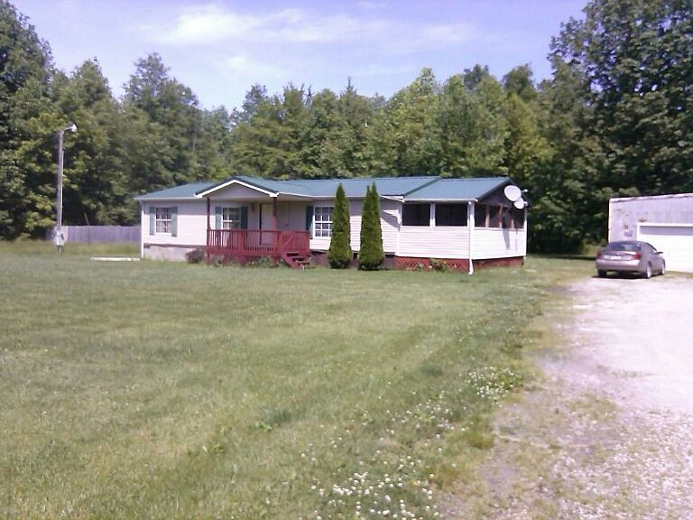 Country Living!! Manufactured home on 3.33 acres+/-. Living rm. Eat-in kitchen. 3 bdrms. 2 full baths. Total electric w/new central air. 30x36 detached garage!! Enclosed porch. Covered front porch. Back deck. Shed.
