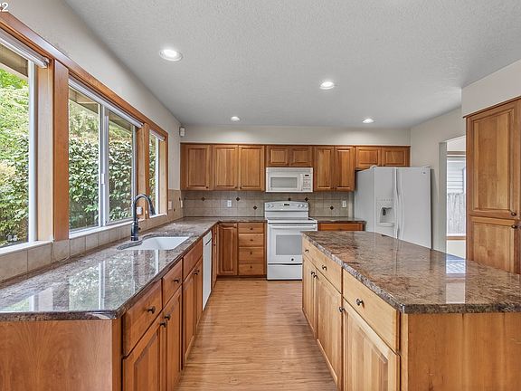 OPEN HOUSE SUNDAY 12-2PM! Exceptional Burntwood location in the Cooper Mt. Elementary district. Home features vaulted formal living rm and soaring ceilings when you enter leading to the large open updated kitchen w/custom cabinets, built in pantry, slab granite counters w/tile backsplash and large eating area, spacious family rm w/newer gas stove and plush carpet. Relax in your private primary suite w/jetted tub, walk-in-closet. Enjoy outdoor living w/newer deck backing to park.