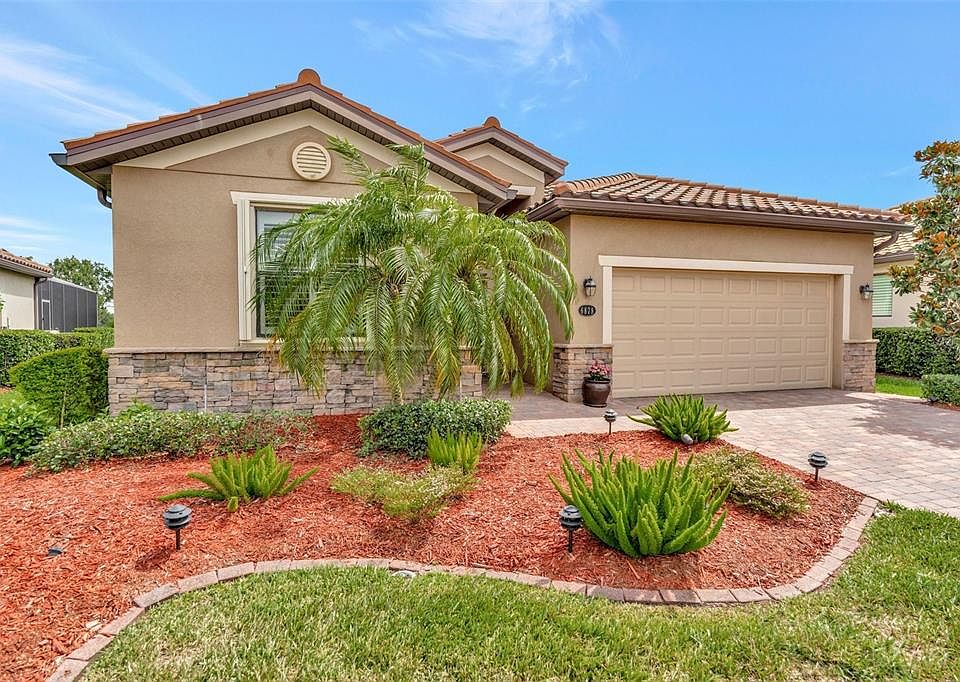 This fantastic Trevi Model offers a 4 Bedroom, 3 Bath open floor plan with new custom kitchen with shaker style cabinets, large island with spacious granite countertops and all new Stainless Steel Appliances! Owners Suite offers a spacious Walk-in Closet and a spa like en-suite with dual sinks and garden tub. Split bedroom plan offers privacy as well as separate bathrooms for each family or guest. No carpet in this home, all tile throughout. The Living Room is perfect for large gatherings or entertaining overlooking the heated saltwater pool and hot tub. Your active lifestyle is complemented with outstanding amenities including 8 Tennis Courts, 39,000 Square-Foot Clubhouse, two State-of-the-Art Fitness Center, two Resort Style and Resistance Exercise Pools, Fine Dining. This home is also within minutes to the Outlet Malls, UTC, Anna Maria Island beaches and Sarasota International Airport! --
