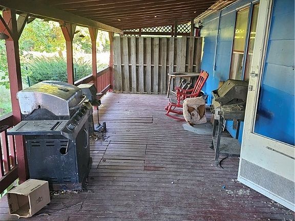 Amazing location! Just steps from Pymatuning Lake beach! 2 lots of land totaling 0.92 acres! This relatively new and spacious ranch has 3 huge bedrooms with vaulted ceilings, a laundry/utility room, and a large covered porch. The yard features a massive covered deck and a two-car garage with an additional living room. The house needs work (kitchen, bathroom, flooring)but is priced accordingly.