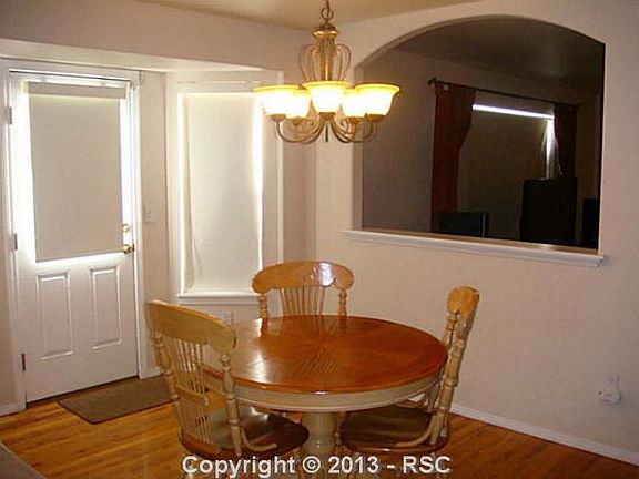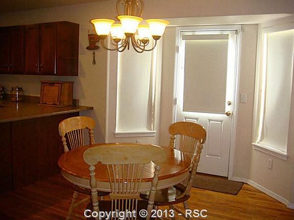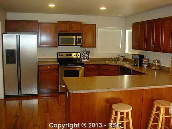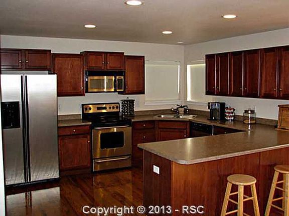 This stunning 2-story home backs right up to Open Space with trails, and boasts picturesque views of Pikes Peak from both floors of the home. The open floor plan features a large and spacious main level with the Kitchen, Dining Room, and Family Room. Hardwood floors in the Dining and Kitchen areas add elegance to the home, as well as the stainless steel appliances and custom-installed lighting. You will love the extra large Master Bedroom with its vaulted ceiling and large remote-controlled fan, as well as the attached