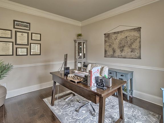 HARDWOODS, HARDWOODS, HARDWOODS!! This 3 year old home is loaded with upgrades including Hardwoods in every room, except the baths, which have tile. This is truly one of a kind. There is a formal living room, formal dining room (with coffered ceiling and wainscoting), large family room (with coffered ceiling and fireplace), bedroom, full bath and gourmet kitchen on the first floor. The eat in kitchen has granite counter tops, tile back splash, island, stainless appliances, gas cook top and large pantry. The second floor features a large master suite with dual quartz vanity, garden tub, separate shower, water closet and large walk in closet. There are 3 additional bedrooms (one with a private bath and walk in closet), hall bath with a double vanity and large media room. All rooms have hardwoods and baths have tile. The lot has a spacious, fenced back yard and front yard with a protected natural area on the right.