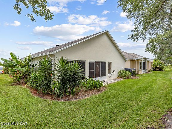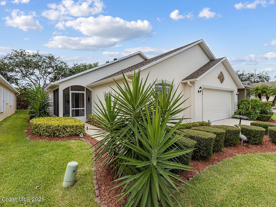 A must-see in the much sought-after Compass Pointe 55+ community in West Melbourne! The Tahitian floor plan features a split bedroom floor plan, vaulted ceilings, and a kitchen open to the family room and breakfast nook. Perfect for entertaining. Lovely screened porch at the front entry and another screened porch in the backyard with windows to enjoy. Updates included in this home are a ROOF in 2019, W/H 2017, HVAC in 2021, newer SS appliances, and the cabinetry in the kitchen was refinished in the past couple of years. You are not only buying a home; you are buying into a lifestyle in this active community. Many amenities include the heated pool/spa, fitness room, clubhouse, putting green & shuffleboard. Easy access to everything you need, shopping, restaurants, 7 miles to the beaches.