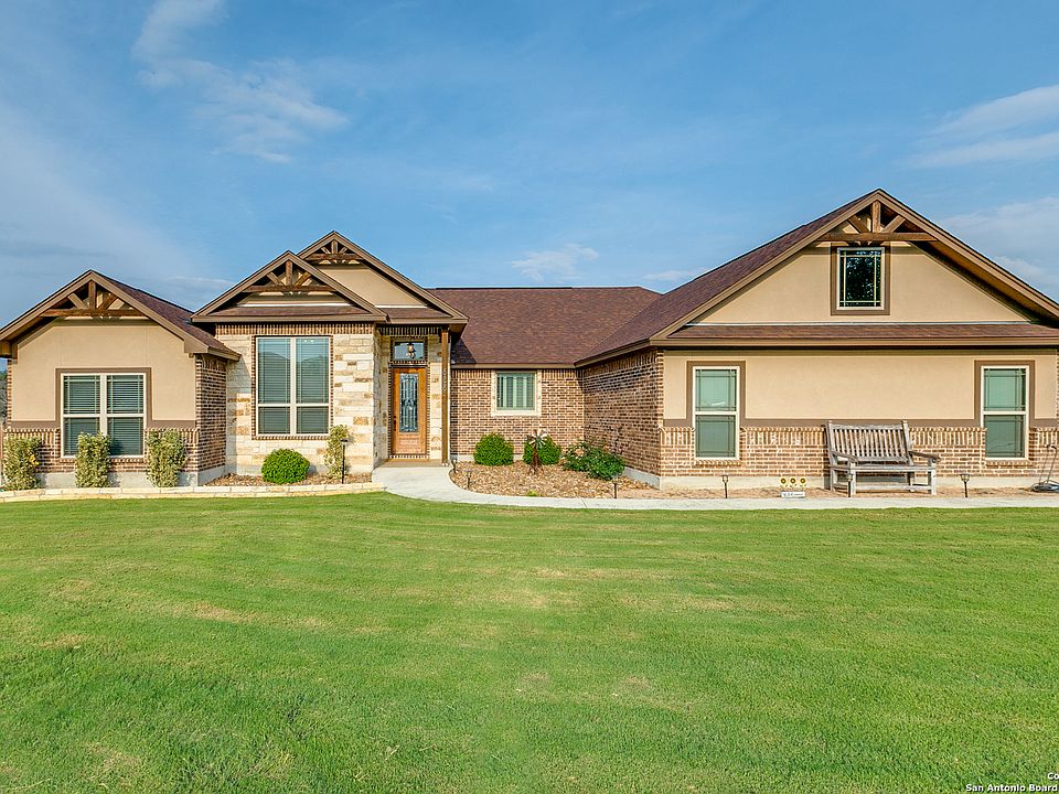 Situated on a generous 1.27-acre flat lot, this beautifully crafted 3-bedroom, 2-bath home offers exceptional curb appeal with brick, rock, and stucco wrapping all four sides for lasting durability and timeless style. Inside, the open layout features granite countertops, beautiful accents throughout, and a warm, inviting atmosphere that makes the space feel like home. Step outside to your own private retreat-an entertainer's dream with a sparkling pool and a fully equipped outdoor living area, complete with a cozy fireplace, perfect for gatherings year-round. A side yard double gate provides easy access for boats, RVs, or other large vehicles, while a smaller fenced area offers a safe and convenient space for pets. With plenty of usable space, mature trees, and peaceful surroundings, this property perfectly blends comfort, functionality, and refined outdoor living-ideal for those who value privacy, space, and style.