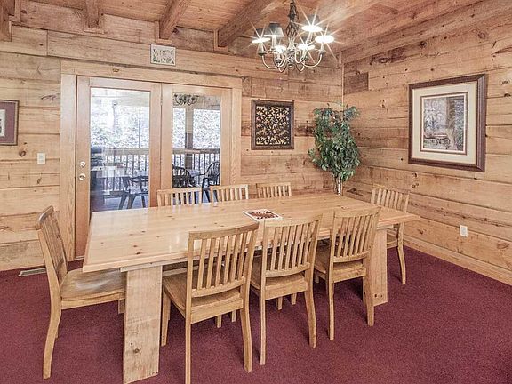 If you are looking for "Southern Hospitality" you have found it in this 8 bedroom 7 bath vacation lodge in Eagles Ridge Resort. This cabin is perfect for group retreats or family reunions. Spaciously designed with an open living room, dining room and fully equipped kitchen. Off the main living area is a fabulous large screened porch with hot tub. Newly renovated media/game room. The porch is perfect for large groups, no cramped space here. If you want a little more privacy there are two large front porches to enjoy morning coffee or afternoon tea. The lower level features a wonderful sitting area and down stairs a generous size theater/game room. The master suite offers a whirlpool tub and private bath. Great investment opportunity and currently on a rental program. Convenient to the never ending activities of Pigeon Forge, shopping in Sevierville, nostalgic Gatlinburg and of course just a few minutes from The Great Smoky Mountain National Park.
