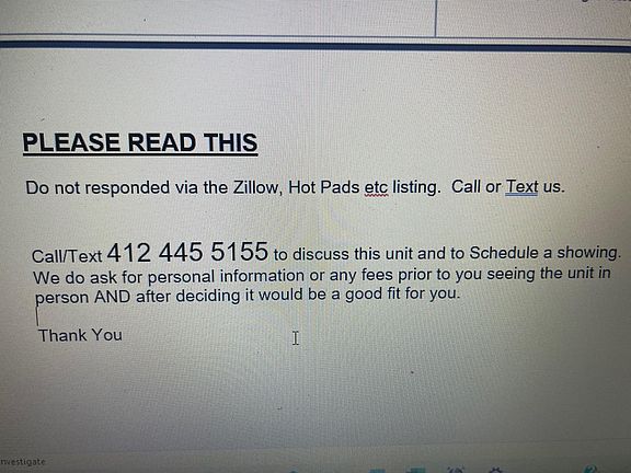 We have a great one bedroom unit in the Heart of Downtown Mt Lebanon. Includes dedicated off street parking (No Parking fee and its an assigned numbered space). All utilities and included in the rent except electric. Lights only. Hardwood floors and plenty of closet space (4 closets, two of them are walkins). Minutes from "T" and all that Mt Lebanon downtown has to offer. Building has all new windows, Laundry room and interior and exterior paint. This property is directly behind Totopa Mexican Restaurant. A few minutes walk to all the shops, eateries, coffee shops and more that Mt Lebanon has to offer. Until had an updated kitchen with dishwasher, granite counters and tiled backsplash. This property is a Non Smoking Building. Please call or Text us directly. We do not use Zillow Applications Services. Please do not reply via the Zillow email link. Call or text us. We do require an application We do not participate in any rental assistant programs such as Section 8. 1year