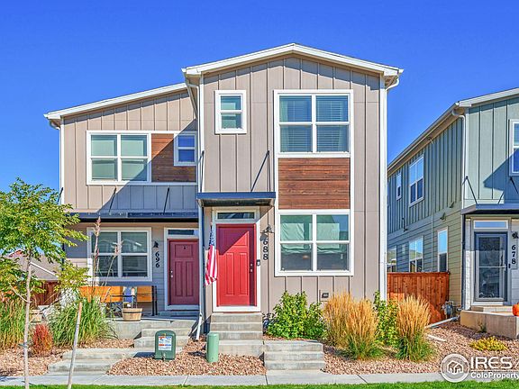 Nearly new paired home, built in 2019 is beautiful inside and out. Large windows provide tons of natural light. Modern finishes throughout! Durable, luxury vinyl plank floors flow throughout the main level. A one-car attached garage will keep your vehicle safe and clear of ice and snow. The upstairs has 2 bedrooms, 2 baths. The yard has been Xeriscaped and is completely fenced. The Prairie Star neighborhood has multiple parks and an optional pool and clubhouse. Just off HWY 287, the neighborhood is convenient to both Loveland and Berthoud and will soon have more shopping and dining. Great hiking and biking can be found close by and the new TPC golf course is right across the street. If you are looking for a great place to launch Colorado adventures, this could be the home for you!