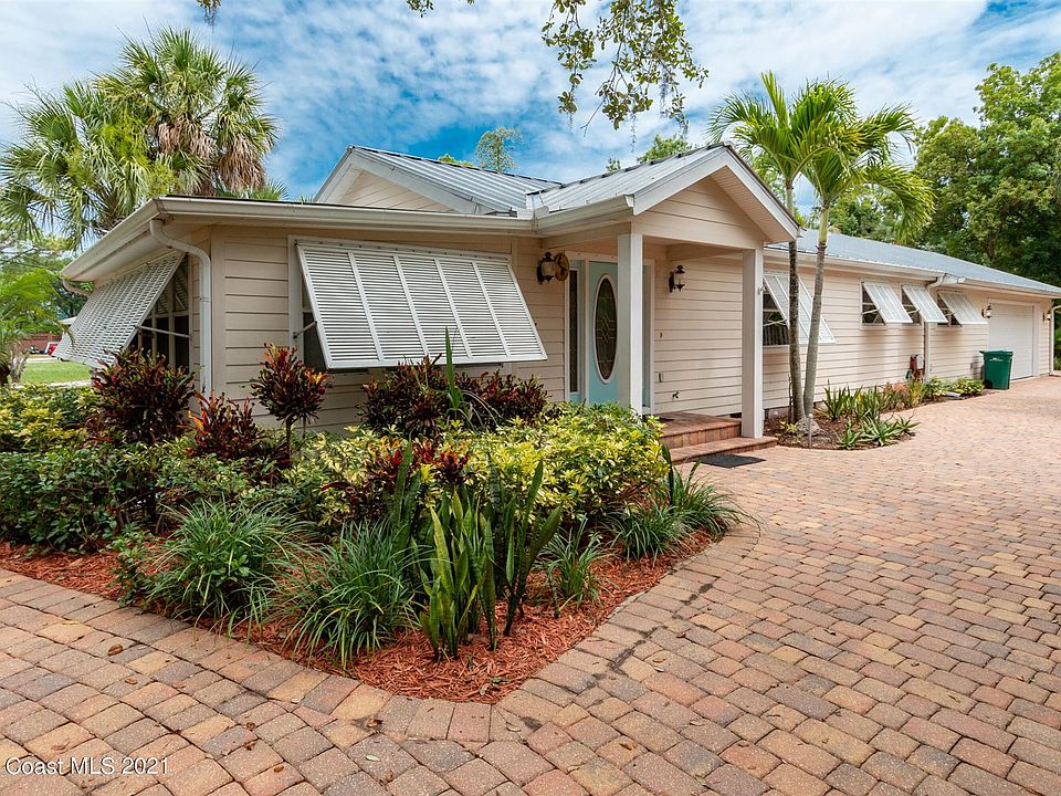 Original structure built in 1949, but you will never know! This unique Key West style bungalow home is a true 3/3. Impressive cathedral ceiling in master located in the back of the home, a true split plan! Did I mention Bamboo floors throughout? Over 4800 sq. ft. of pavered drive, pool and picnic areas. A street so private you have your own turn around outside of your massive 2 car garage with work area. Metal roof and shutters make this a strong structure you can lock up and leave when out of town. All this home within just a half mile to the enjoyment of the Eau Gallie Art District with all the Dinning and entertainment coming back to the area. This home is a retreat/dream waiting for someone to enjoy! En Suite bathroom has been remodeled.