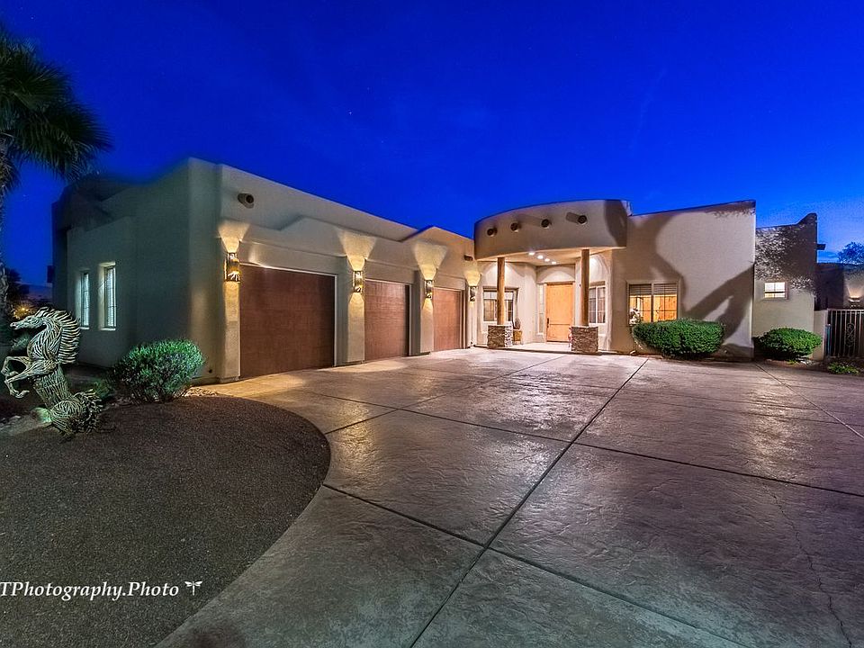 Nestled in the guard-gated community of LaSCALA. Luxurious Home in Gated Community! SWIMMING POOL/Spa, RV Garage! Fully FURNISHED!!! Natural Wood stained 6" Crown, Custom wall finishes. Stainless Appliances. Upgraded Fixtures! Professionally decorated. GORGEOUS quality furniture, art, custom window coverings, custom bedspreads, rugs, lamps...it has it all! MOVE IN READY! A Master Bedroom Suite and sitting area boasts picturesque view to lush landscape with French Doors to Patio. Large Bathtub and walk-in shower. Two Guest Rooms with ensuite and a Study with views to the park. Simple fabulous Kitchen is open and elegant! The Fireplace makes a cozy setting for a huge, elegant, yet casual Dining Room. Grandeur! Cooktop Island, Granite, Stainless Steal appliances. The backyard is a sanctuary featuring a crystal blue Swimming Pool and Spa. The front has views to a lush green grass park to mountain views. LaScala on the Oasis Golf Course is both unique and rare! Serene, quiet, beautiful neighborhood for an evening stroll right inside your gated community.