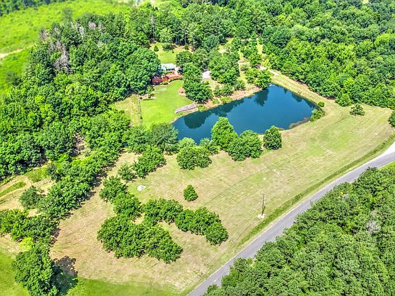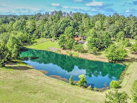 Looking for a peaceful & private retreat, this is the home just for you! Fabulous waterfront 4 bed 3 full bath cabin nested on 14 acres with stocked spring fed pond with bass, catfish & brim! Spectacular views from the huge front porch making everyday living feel like paradise plus walkway to the home features a koi pond! Beautiful hardwood flooring! Living room with vaulted ceiling & stove fireplace! Kitchen with granite countertops, breakfast bar, walk in pantry, range, built in microwave, dishwasher, chef's sink & refrigerator stays! Large dining room with nice ceiling fan & custom dining table that is negotiable! Owners suite with ceiling fan, walk in closet & nearby full bathroom with with double sink vanity & jetted tub! Two additional spare bedrooms on main level! Second full bathroom! Upstairs 4th bedroom with full bathroom with closet, would also make a great game room! Sconces throughout & updated ceiling fans! Laundry enclosed under the stairwell with central vac system! Side entry two car garage that is heated/cooled! Sprinkler system in the fenced area! Lumber for the home came from the land! Property has muscadine, blueberry, apple & pear! Under deck has area for cleaning fish! High speed internet available! This home is an absolute must see!