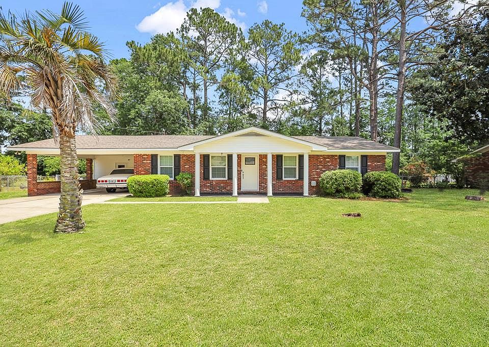 Welcome to this charming 4-bedroom, 2-bathroom brick ranch-style home nestled in the heart of Hinesville. As you approach, you'll be greeted by a convenient carport for 2 vehicles and a welcoming covered front porch. Inside, you find the living room leads seamlessly to the Kitchen. Th kitchen boasts stainless steel appliances and a cozy dining area, ideal for family meals and gatherings. A separate laundry room adds convenience to your daily routines. Step outside to discover a large fenced backyard with a storage shed, offering ample space for outdoor activities, gardening, and storage needs. The property spans just over a quarter acre. Located moments from Fort Stewart, this home offers easy access to military life and is conveniently close to all the shopping and restaurants that Hinesville has to offer.