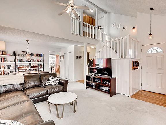 Great starter home in a desirable Highlands Ranch neighborhood. This cute home is 1,820 Sq Ft, and comes with 3 bedrooms, 2 bathrooms, and a 2 car garage. Vaulted ceilings with skylights in the living room with make for a bright open welcoming feel, great for entertaining, and in the winter sit in front of the cozy gas fireplace. Lovely kitchen and dining room with easy backyard view and access. Big backyard for dogs or kids to exercise and play, great for entertaining and barbecuing. Backyard includes areas for gardening. Two bedrooms upstairs with ceiling fans in each to keep individuals cool in the summer, storage and a full bathroom. Additional bedroom in the basement, while the rest of the basement is the perfect space for a family room, exercise room or office, the choice is yours. Carpet and wood flooring throughout home. Quiet cul de sac. Needs a little updating. Already has a radon mitigation system. Sellers are giving a 3K carpet allowance.