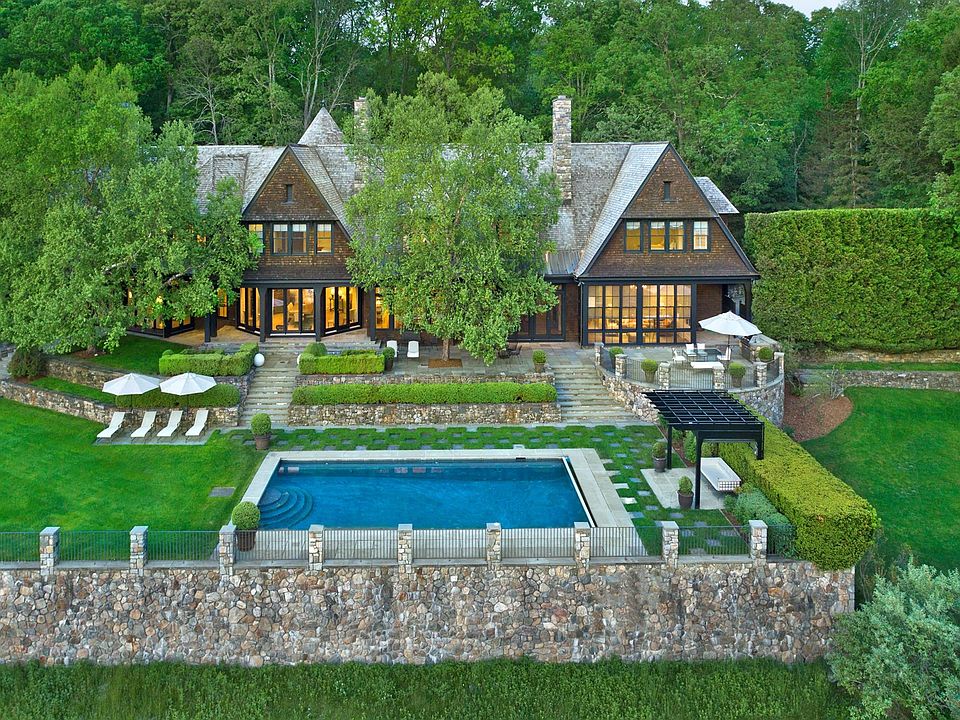 Stunning custom design, sweeping water vistas and supreme privacy define this extraordinary estate overlooking sparkling John D. Milne Lake. Designed by esteemed architect Mark Finlay and crafted by award-winning Hobbs Inc. "Lakeview" is graced with endless amenities. The property impresses with the sheer beauty of the gated grounds complete with sweeping terraces and a heated pool, and the impressive Shingle Style manor accented with trademark towers, eyebrow windows and fieldstone. Countless highlights include a 2-story entrance hall with a regal staircase, exquisite formal rooms, a stunning kitchen with a breakfast room, a 2-story family room, a solarium, and mahogany office. All the main rooms embrace the water views and open directly to the terrace and pool. Equally memorable is the view-filled primary suite, 5 ensuite bedrooms, a finished lower level with a temperature-controlled wine room and multiple recreation spaces, and a 3-car heated garage. Close to town and train, this unique and private waterfront manor represents the very best that New Canaan has to offer.