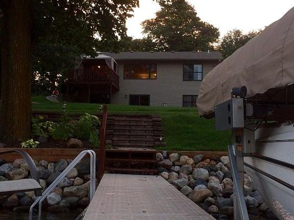 If you are looking for a home with a great beach with a gentle slope from the house this is it. 2009 the Beach is landscaped with a keystone block and cobbles stone patio. The lakeshore has also been rip rapped by Ferguson Brothers Excavating. This is on the BIG BAY of Maple lake. This 3 bedroom 2 bath home is perfect for year round use or weekenders who want to turn key lake home. Solid custom Hickory cabinets in the kitchen. New shingles on roof 2011 Abc Seamless steel gutters installed 2011.New in 2012 Landscaped around the house.