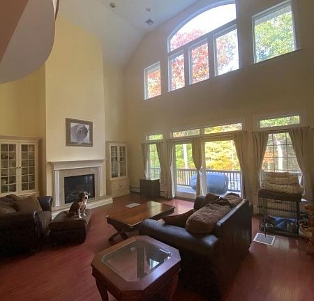 Large Colonial with lemonade front porch on 3 private acres. Large Family, dining room & kitchen as well as a breakfast room, den, laundry room & powder room. First floor master bedroom with walk-in closet & full bath, upper level has 2 additional bedrooms with their own walk-in closets & full bathrooms as well as attic spaces. Finished basement that could be used for home office with kitchenette, living room, full bath & den