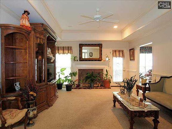 Desirable Lugoff/Elgin Schools. Built in 2002 and well-maintained since, this 3 BR/2B home has a possible fourth bedroom in the large frog (with closet). Hardwood floors highlight the foyer, hallway, formal dining room with its vaulted ceiling, and the guest bedroom. The great room has box ceiling, wood burning fireplace and provides access to the large rear deck and patio area while the eat-in kitchen provides ample cabinet and counter space. The main floor master suite has box ceilings, garden tub and separate WC and shower areas. The carefully landscaped grounds includes sprinkler system, large natural area in the front and flowers and shrubs in the partially fenced side and back yards. Convenient to I-20, major malls & Columbia, SC.