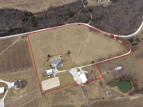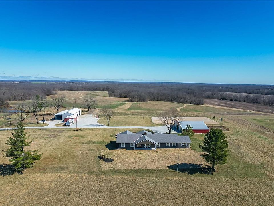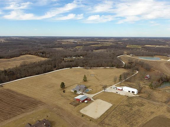 Rare find. Updated 2576 +/- sq ft ranch on over 16 acres. 3 car attached garage with over 1000 sq ft. 5 stall horse barn with half bath and spray foam insulation. 80x30 shed with 72x18 lean too with full RV hook ups. 30x35 of which has concrete, hot/cold water, electric, insulated, heated/cooled and has bathroom (insulated 12' overhead door). Geothermal ground source loop HVAC unit on house. New kitchen in 2021 (custom cabinetry, under cabinet lighting, hard surface counter tops, walk in pantry, induction range/oven. Hall bath and Master bath updated in 2023. Updated white doors and trim through out home. New water filtration system and softener 2023. In-ground pool. Main floor laundry. Woodburing Buck Stove. Gorgeaous heated and cooled sunroom for relaxing in the evening or having that morning coffee. Agent/Owned COOL: 14 SEER+