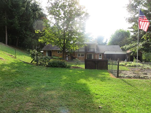 2,572 sq. ft. brick & vinyl tri-level situated on 2+ acres of cleared mostly level land. 3 Bedrooms, 2 1/2 baths, 1st floor office (or 4th bedroom),1st floor rec-room w/elect. fireplace & wet bar, 1st floor laundry (laundry chute from master bath), granite counter tops, finished basement, attic playroom/storage, 2nd attic over garage w/walk-in storage, 2 car attached garage, basketball hoop on patio joining screened-in porch overlooking small fish pond w/waterfall, new windows w/double low e-glass & argon, shed, extra building at rear of property. Loads of storage areas. Not a drive by, many extras.