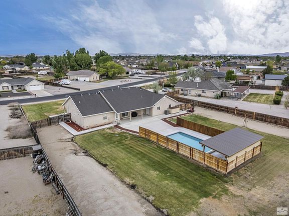 **Seller is motivated and will consider all reasonable offers** Sitting on a fully landscaped acre, with a large RV access, this modern farmhouse is a true desert oasis! The interior of the home is well kept and cared for featuring tall, vaulted ceilings, laminate wood flooring, stainless-steel appliances in the kitchen and a newer A/C unit for those hot summer days. The back yard is the "crown jewel" with its resort-style patio featuring an in-ground heated pool that is useable year-round and a covered pool-patio that would leave even the nicest resorts in awe!, The rest of the back yard is lush with grass and mature trees that make for the perfect area for all of your backyard entertainment needs and wants. Sitting in one of the most desired neighborhoods in Fallon, the pictures do not do this home justice, come see for yourself!