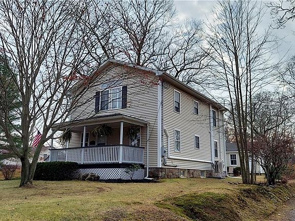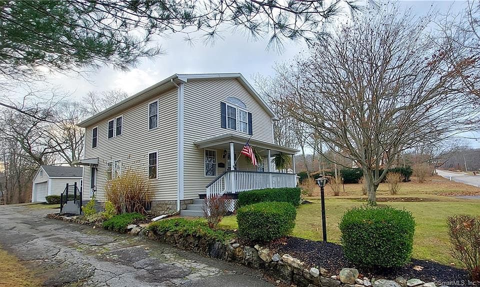 Just in time for the Holidays This Colonial house offers something for everyone. Charm & Character abound from the comfortable front porch for a moment of relaxation to the big fire pit in the rear yard with plenty of seating for family and friends to gather round and enjoy some home made smores. Beautiful 1.8-acre lot with circular driveway and 2 car detached garage with electric opener. The house has an open floor plan and provides a first-floor bedroom and full bath for one floor living. The adjoining living room, dining area and eat in kitchen all have crown molding and shuttered windows. Upstairs you have a separate spacious laundry room. Master bedroom with cathedral ceiling, Palladian window and a walk-in closet. A small area for an office or could be the perfect nursery if needed. Full bath with whirlpool tub and stand alone 4' shower. Additional storage throughout the house and a full dry basement. Multi zone oil baseboard heat and central air. Many updates that need to be seen to be appreciated. Convenient location with nearby shopping and access for commuting.