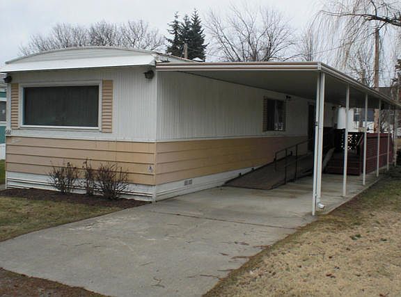 Mobile home in Fruitland Mobile Home Park - a 55+ park. 1978 Marlette (14x6-7); 2 bedroom, 2 bathroom, covered front porch and carport with access ramp. Monthly Fee includes water, sewer/garbage and street maintenance. 2 storage sheds included plus stove, refrigerator, freezer and clothes washer and dryer. Convenient location to shopping areas and Hwy 95. Ready to move in to now.