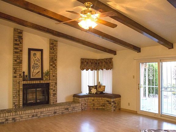 Look no further - you've found home in this well-maintained Presley built 3 Bedroom home in established neighborhood. Enjoy the numerous updates and upgrades such as refrigerated air, updated kitchen cabinets with granite countertops, solid surface counter tops in bathrooms, certified handicapped accessible shower in master bath, newer windows throughout home, newer stucco, epoxy floor in garage with storage cupboards...and the list goes on! Don't miss the fully landscaped back yard with covered porch, gas stub-out for grill, storage shed, and well established trees to provide your own oasis in the desert! Put this one on your must see list today!