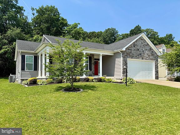 If you need everything all on one level this stone front beauty is for you. Inviting front porch is perfect for enjoying your morning coffee. Open living, dining, kitchen area is ideal for entertaining. This home has the split bedroom design with the primary bedroom separate from the additional two bedrooms. Although this home has a full unfinished basement the laundry is conveniently located on the main living area. The living room has a cozy gas fireplace perfect for those cold winter evenings. The primary bedroom has tray ceilings and a roomy walk in closet. The primary bath is huge with double vanities, walk in shower and even a soaking tub. The huge basement is ready for your imagination and includes a walk out to the back yard. The deck off the living area is ideal for sitting, grilling and watching nature in the woods behind the backyard. Don't wait to make your appointment for this one!