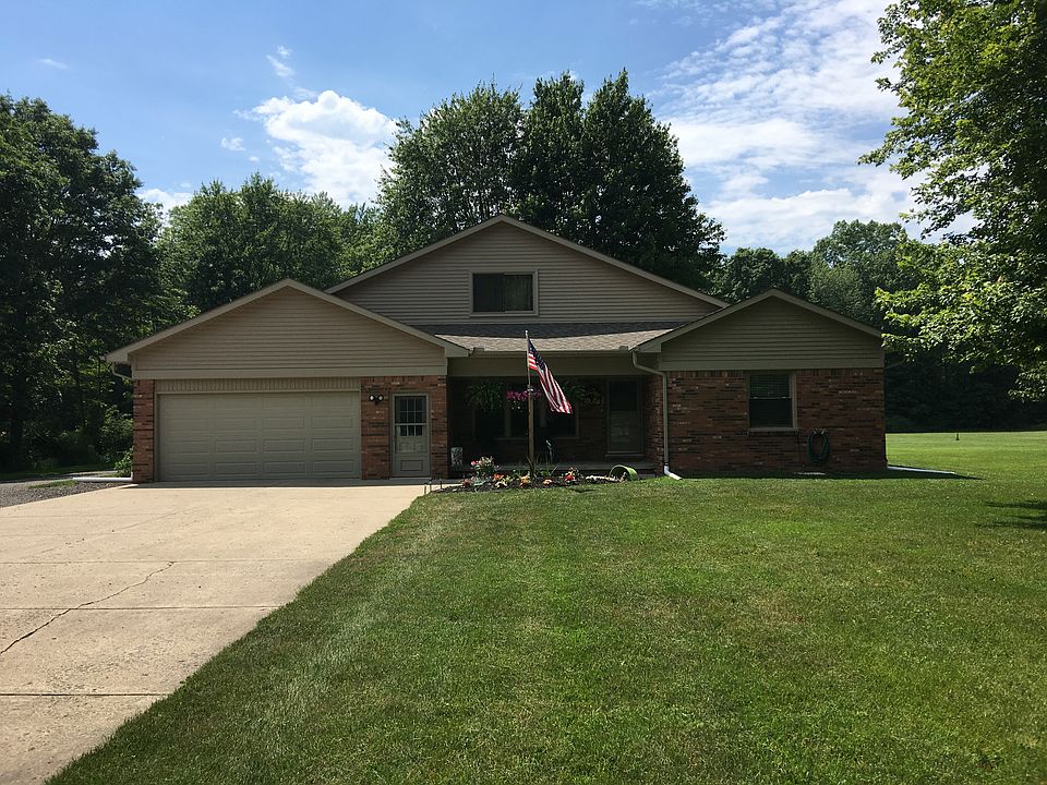 2.5 Acres. Custom built, spacious ranch features: open concept living rm, kitchen w/ eating space, large dining room and family room. Overlooks 2 acres of trees & pond. Master bedroom with private bath. 1st floor laundry, Utility rm w/ entrance to crawl space- 5 block high. Handicap ramp in garage entrance. Plenty of storage space. Large Pole Barn in rear 30x40. City sewer, city water, natural gas.