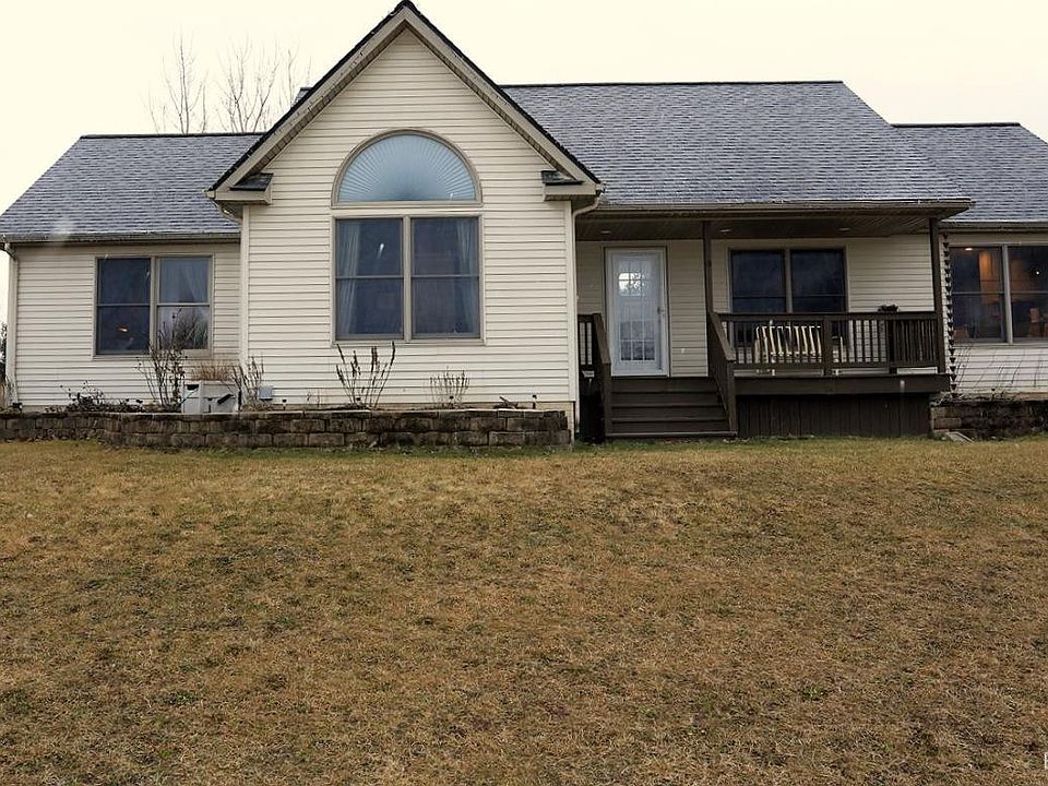Rural living with convenience around the corner- 3-bedroom, 2-bathroom ranch with beautiful county views. This home welcomes you into an amazing natural light filled living area with cathedral ceiling and gas fireplace. The open floor plan showcases a dedicated dining room that walks into the kitchen featuring a breakfast bar area, double oven, and spacious pantry. A large primary bedroom with ensuite and jacuzzi tub is perfect for soaking in some relaxation. The second bedroom includes an additional cathedral ceiling, and the lower level boasts a spacious unfinished basement. Step outside and take in the fresh air on one of three decks-front, side and back to relax and enjoy nature. Attached convenience with a 2.5 car garage, shed, above ground pool, 30 amp generator hook-up, all on just over 2 acres., Primary Bath