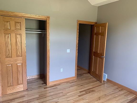 Ranch style home with a full walkout basement. The basement has poured wall construction. The home has hardwood floors throughout all of the living area except the bathrooms which are tile. The master bathroom has a walk-in tile shower and jacuzzi tub. The living room has a gas fireplace with remote control. There is a skylight in the living room with an open floor plan. The kitchen has an island and all countertops are solid-surface with tile backsplash. There is a large composite deck off of the back of the house with a beautiful countryside view facing south. There is a field stone retaining wall in the back of the house to give a nice patio area where the walkout basement opens up. It has a 2 car attached garage and also a storage shed. The master bedroom has 2 walk-in closets. The home has central air conditioning and a central vacuum system.