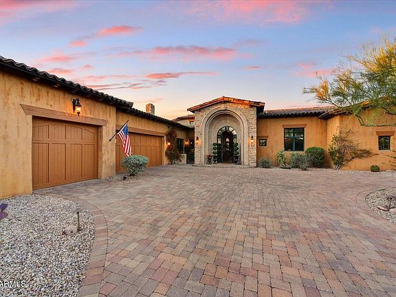 Welcome to this stunning, authentic Tuscan-style home, offering the perfect blend of privacy, elegance, & breathtaking views of the Superstition Mountains. Nestled on a coveted corner lot within the prestigious Superstition Mountain Golf & Country Club, this exquisite residence is in a 24-hour guarded, gated community renowned for its world-class amenities & serene ambiance. A grand Cantera stone entry welcomes you into a masterpiece adorned with Venetian plaster artistry. This 3-bedroom, 3.5-bathroom home also features a dedicated office/library & striking Cantera stone fireplaces. Architectural details abound, including 8', 12', & 17.5' ceilings with decorative ceiling nooks, rich wooden shutters, and elegant window treatments, designed for both function & beauty. The gourmet kitchen is equipped with a Sub-Zero refrigerator, Viking gas range with an Over-the-Stove pot faucet filler, dual dishwashers, granite countertops, under-cabinet up-lighting, a butler's pantry, and an Ivation wine grotto, a dream for entertainers and culinary enthusiasts alike. This kitchen also features double ovens, two sinks including one on the center island and two convenient disposals for added functionality. The primary suite is a private retreat, featuring its own outdoor patio, a spa-inspired bath with a jetted tub, dual vanities, and spacious walk-in closets. Step outside to experience an extraordinary outdoor living space, complete with a sparkling pool and spa, built-in BBQ, fire pits, and multiple patios, perfect for relaxing or hosting guests. Additional highlights include a three-car extended length garage with an abundant amount of garage storage, and a central vacuum system for ultimate convenience. As part of the exclusive Lyle Anderson community, residents, if they choose to join, can enjoy 36 holes of Nicklaus-designed golf, a 50,000 sq. ft. clubhouse, and a vibrant social scene. Beyond golf, the vast Superstition Mountains offer plentiful scenic hiking and jeep trails. Close by, the Tonto National Forest offers 2.9 million acres of wilderness and 4 large lakes to enjoy and explore. All of this is located just 35 freeway minutes from Sky Harbor Airport and 20 minutes from Mesa Gateway Airport and San Tan Village. Golf club membership is available under a separate agreement. Whether you're a passionate golfer, an outdoor enthusiast, or simply seeking an exceptional place to be your home, this property is a rare find in one of Arizona's most sought-after communities. Don't miss your opportunity to own this luxurious desert retreat!