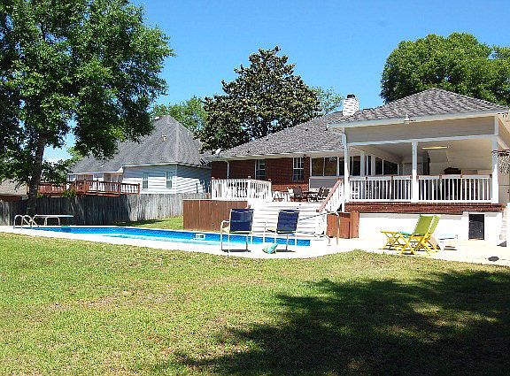 Excellent location for Mobile & P'cola commuters. Plenty of room to grow in this large home in very desirable neighborhood next to elementary school! Home has chair rail molding, raised ceilings, tray ceiling, fireplace, french doors to Florida room with window seats overlooking large deck & saltwater pool! FRESH, NEW light gray paint in Foyer and Dining room enhances the beauty of this home! Floored attic storage, full storage (or workspace) under deck, automatic zoned sprinkler system, approx 258sf workshop, 11x6 storage room too! Owners have put a lot of heart into comfort - catering to relaxation, entertaining, and work-space dreams! (Two lots, PPIN #113986 & PPIN #113993 included)