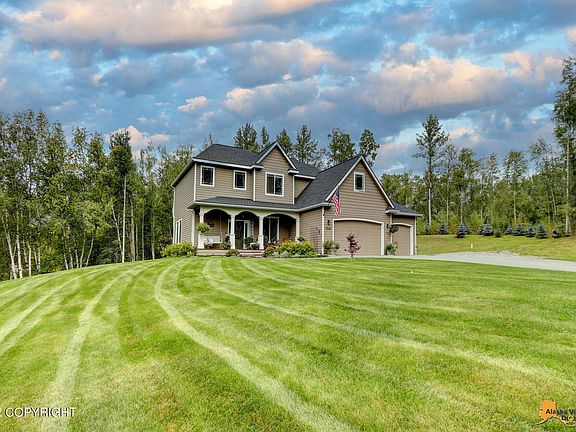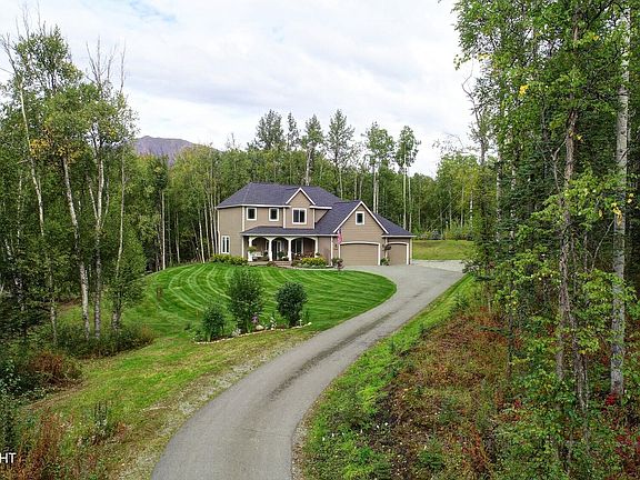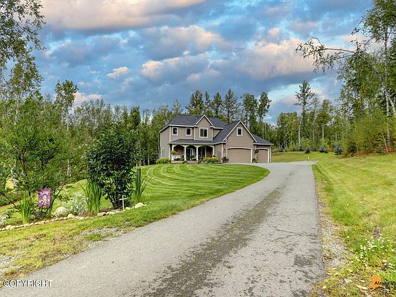 Beautiful home on a private 3 acre lot! This incredible home sits tucked away in the trees on a large usable lot. Located just a short driving distance from all that Wasilla and Palmer have to offer. Inside the home you are welcomed by high ceilings and an open floor plan perfect for entertaining and large families. Upstairs are four large bedrooms including an exquisite primary bedroom. The...Primary bedroom features a gas fireplace, luxurious bathroom, and a large closest with enough room for everything! Other features include; In-floor heat throughout, large 3 car garage, great entryway from the garage with room to store all of your gear, outdoor lighting, garden boxes, great sledding hill and outdoor space! Call to schedule a tour of this home today!