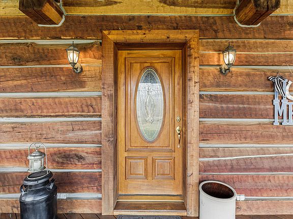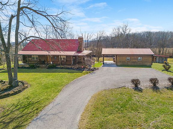 Magnificent log home nestled on almost 7 acres of picturesque land! Boasting 3 bedrooms, 2 full baths and 2 half baths, this home offers ample space and comfort. Built with 12x12 solid Poplar logs, this 1 owner home has been lovingly maintained for 24 years! The main floor includes a large great room with solid wood beams, stone fireplace with wood burning stove insert, beautiful hardwood flooring and lots of natural light; the kitchen has abundant solid wood cabinetry and a large island with wood tops, breakfast bar and generous dining area-all with hardwood flooring. Down the hall is the spacious primary bedroom; full bathroom with tile flooring, whirlpool tub and walk-in shower; laundry room and half bathroom. Upstairs there is a great sized guest bedroom/loft and sitting area with hardwood flooring. In the basement, there is plenty of room for entertaining including a family room with buck stove and stone fireplace surround, bonus room, guest bedroom with walk-in closet, and full bathroom with step-in shower and tile floor plus a storage room.