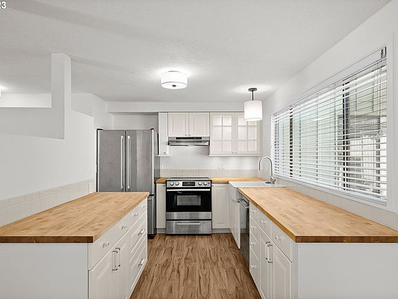 Stunning ground floor one level 3 bedroom 2 bath CONDO and garage in the coveted Lake Oswego school district. This completely updated condominium is the perfect place to call home. With its spacious layout, stunning finishes, and convenient location, you'll love everything it has to offer with new carpet, paint and light fixtures. The main living area is open and airy, with plenty of natural light from the large windows. The cook's kitchen is fully updated with new flooring, stainless steel appliances and butcher block countertops with inside laundry room. The master bedroom is large and luxurious with the updated main bath close by. The two additional bedrooms are also spacious and bright. The unit is located in a quiet neighborhood close to all the amenities you need. Literally just a short walk to the pool off the refinished deck and garden beds. You're also close to downtown Lake Grove and Lake Oswego with its fabulous boutique shops, restaurants, and entertainment. Live the affordable lifestyle in a great location you've always dreamed of today! Call your Real Estate Broker for a private showing!