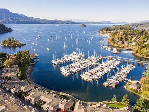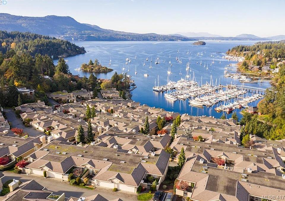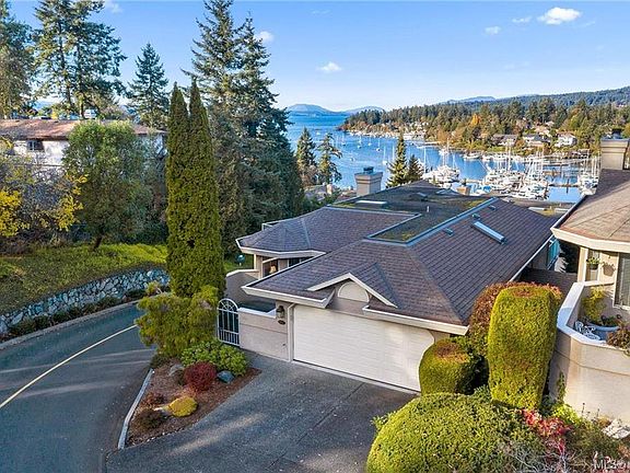 Welcome to Port Royale Estates! This beautiful top level, end unit townhome boasts stunning ocean and marina views from the living room, kitchen & master bedroom. Enjoy the beautiful Westcoast sunsets over the Georgia Strait from two decks totalling 740 sqft. This bright home has large windows throughout and a vaulted ceiling in the main living/dining area giving a grand and spacious feel. The sprawling master bedroom has patio doors to the deck and a large 5 piece ensuite with skylight. This townhome is one of two in the complex that is semi detached from the neighbour and can accommodate two vehicles in the driveway (in addition to the double garage). Original owners have meticulously kept the home in pristine condition. This adult oriented gated community is ideal for the outdoor enthusiast with walking trails, kayaking, and Butchart Gardens at your doorstep! Be sure to watch the video!