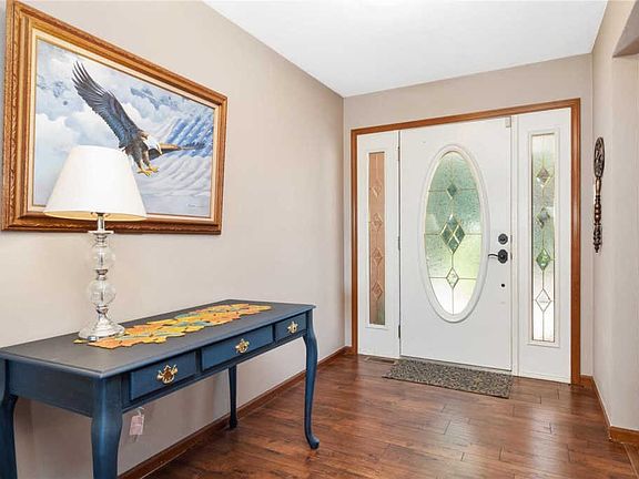 Gorgeous 4bed/3bath 2 sides brick home on ~5 pristine acres in Columbia School District! Step inside to find spacious living room w/large picture window providing great natural light & gleaming floors. Well appointed kitchen boasts abundance of two-toned painted cabinets, pantry, ample counter space & breakfast area w/doors leading to maintenance free deck w/retractable sunshade overlooking your very private back yard! HUGE main floor master suite features access to your deck, large walkin closet & attached bath w/tile floors, double vanity, walkin shower & soaking tub. Also on the main find formal dining room, 2 generously sized bedrooms, full bath & Laundry room. Step down to the finished, walk-out lower level & find sprawling family room w/marble fireplace, full kitchen, rec room w/attached office (possible bedroom) 5th bedroom, den & full bath. Don't forget this great home has access to 2 beautiful stocked lakes. Here is your chance to Live where you LOVE Surrounded by nature!