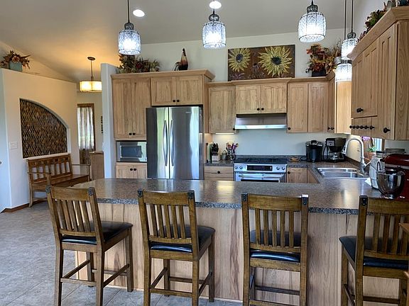 Meticulous, ranch-style home w/incredible curb appeal out in, popular eastern side of Minot, just minutes out to the COUNTRY!!! Rural Minot! The beautifully-landscaped lot is just a little over 3 acres. The south-facing windows and driveway drench the open floor plan w/sunshine. Love that porch!! The kitchen features Hickory cabinetry, high definite countertops, stainless appliances, Duraceramic flooring, missionary wood doors & it's open to the living room and to the beautiful backyard of complete country bliss! Huge 16x20 Cedar deck. The beautiful main floor laundry is convenient & the large dining is great for entertaining and overlooking that beautiful acreage!! Huge garden area and the cutest shed, ever!!. The main floor, master bedroom and bath has a gorgeous, huge walk in tiled shower & massive, walk-in closet. Love the open staircase to the lower level family room that is so perfect for movie night & there's even a wet bar area. Let's talk about the lower level, amazing large full bathroom with the corner Whirlpool air tub and a separate wlk in shower. 1 large egress bedroom and 1 daylight window bedroom and a huge storage area. A triple heated, finished attached garage with a sharp workbench cabinet area! Plus as a bonus the pole outside the garage is electrically ready to build a shop or a pole barn, plus generator hook up if ever needed. This home is low-maintenance, with the steel siding. This is a special home, hurry!