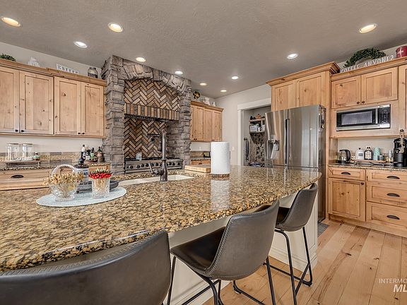 This beautiful custom home has it all. Wake up in your large master bedroom, step out the door onto the covered patio and look over you pool at the mountains while drinking your coffee. Real wood floors through the home. Kitchen is very large and has large built in Viking pro range, large fridge, lots of hardwood cabinets and all counters are granite. The home has 4 bedrooms and 3.5 baths. There is lots of light with all the large windows in the home. The shop is 30x60 plus small barns for animals. Room for your horses. If you're looking for peace and quiet this home has it all.