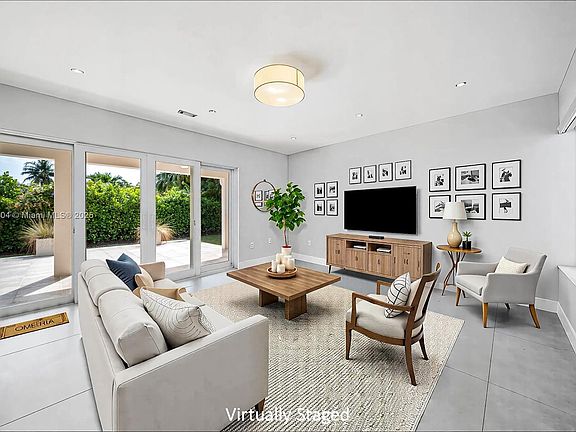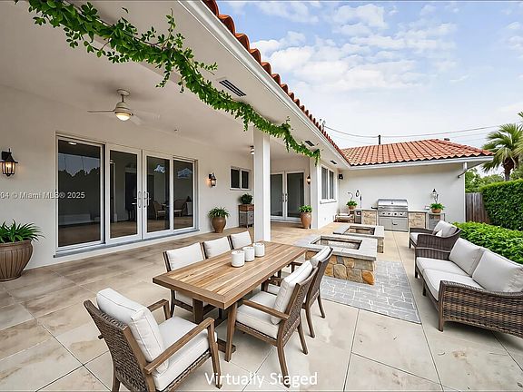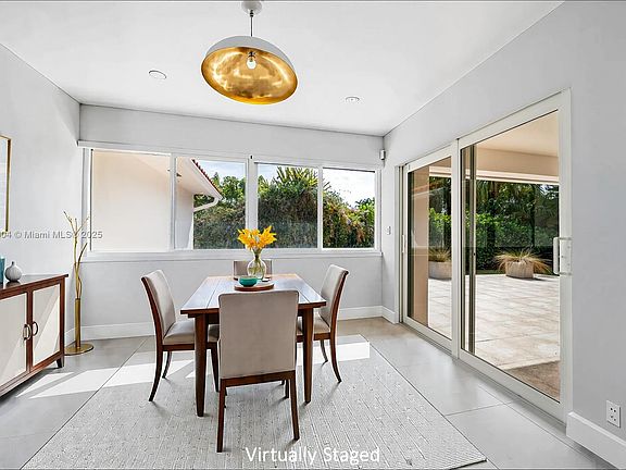 Prepare to be captivated by this stunning, gated corner-lot remodeled Home in the desirable neighborhood of Sunset, offering 5 Bedrooms & 3.5 Bathrooms. Features include a circular driveway, a grand foyer entrance leading into the formal living room with high ceilings, impact windows and doors throughout, large Porcelain tiled floors were tastefully installed throughout the entire Home with same style into the 3 shower areas. The floor plan offers 4 of the Bedrooms situated behind a door for privacy away from the main living areas and 5th bedroom that has its own bathroom and walk-in closet with built-ins. Just like all the closets in the Home. The Kitchen has white modern European-style cabinetry, quartz countertop with matching backsplash. Enjoy the covered back patio and yard space.