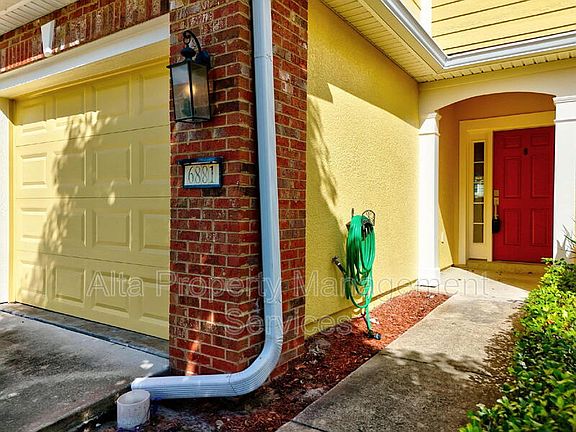 Discover 6881 Woody Vine Dr, an elegant three-bedroom townhouse that blends style and comfort in a stunning water view setting. Spanning 1,716 square feet, this home features a gourmet kitchen with quality appointments and granite countertops, ideal for culinary enthusiasts. The garage, conveniently located off the kitchen, makes grocery unloading a breeze. The combined family and dining room offers a perfect view of the screened-in lanai, creating a seamless indoor-outdoor living experience. Upstairs, you'll find a generous layout complete with conveniently located laundry closet, adding to the home's functionality. Experience the beauty of water view living combined with exceptional amenities in a vibrant community. Don't miss your chance to call this stylish retreat homeschedule your showing today! All Alta Property Management Services residents are required to enroll in the Resident Benefit Package for 50.00 a month!