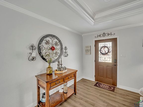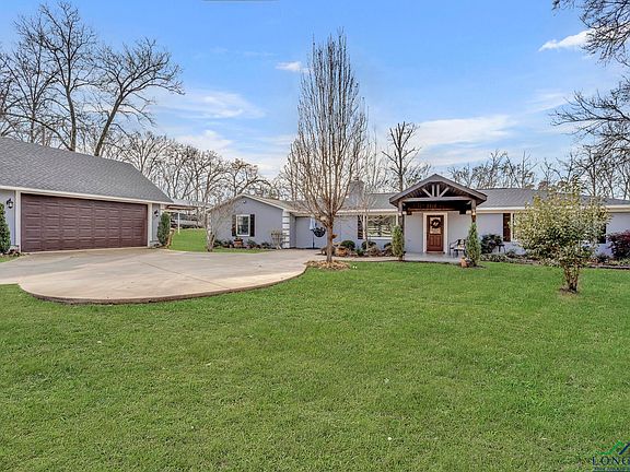 Charming country retreat, nestled in the peaceful countryside of Gilmer, Tx; 6882 Green Hills Road offers a perfect blend of comfort and tranquility. This inviting home is set on a generous almost 3-acre lot, providing ample space for outdoor entertaining and activities. Inside you'll find a spacious layout and thoughtful updates for gatherings and quiet evenings at home. Enter through the covered front patio to a spacious living room featuring a wood-burning fireplace. Your cozy dining area opens to a completed remodeled kitchen with new sink, granite countertops and gas range! The primary suite is a peaceful retreat separated from the other 2 spacious bedrooms, and includes a separate home office or flex space area. Use as a gym, library or work-from-home space. You will love relaxing in the private primary bedroom with enough room for a sitting area and large king-sized bed. Don't miss the primary bathroom which has been completed remodeled with granite countertops, oversized Jacuzzi bathtub, and renovated shower space. The split primary layout provides so much privacy, with the additional 2 bedrooms and bathroom just down the hallway. So much to love inside the home, and so much to enjoy outside the home! Park your boat or RV under the 30x40 covered storage area and there's ample space for tools and equipment in the 10x10 storage shed nearby (with a covered porch). There's even a separate fenced area which could be used for chickens or gardening. You'll be entertaining in style in a beautiful outdoor kitchen area, rain or shine because it's covered, and includes a space for a propane grill, sink and griddle. Don't miss the wet-bar/man-cave next to the outdoor kitchen perfect for gatherings. Your guests will love to relax with drinks around the fire pit with easy access to a guest half-bathroom on the back side of the home! Located just a short drive from downtown Gilmer and Longview, this home offers the perfect balance of rural living with local amenities, schools, dining and parks nearby. Don't miss out, schedule a private tour today!