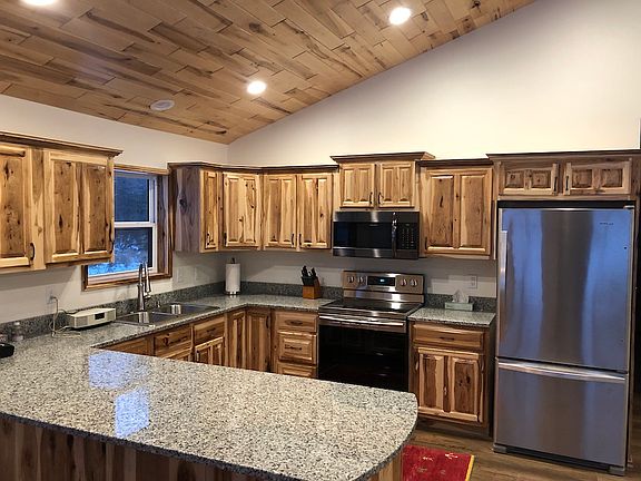 This Beautiful home features custom Hickory cabinetry, hard Maple ceiling, split-stone gas fireplace. Property includes dock & private boat landing and is nested on 13.80 acres. $35 monthly fee covers lawn cutting and snow plowing. Don't miss out on this opportunity.